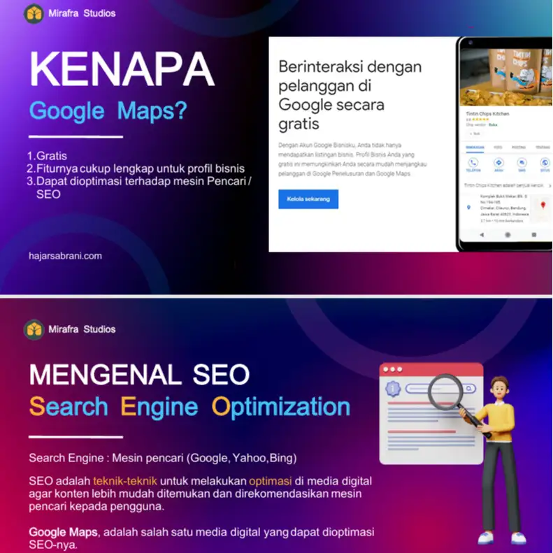 Local SEO membantu bisnis Anda tampil di hasil pencarian lokal, membantu membangun kepercayaan pelanggan, dan memberikan peluang lebih besar untuk konversi. Jangan lewatkan kesempatan untuk mengembangkan bisnis Anda dengan memanfaatkan Google Maps secara maksimal.